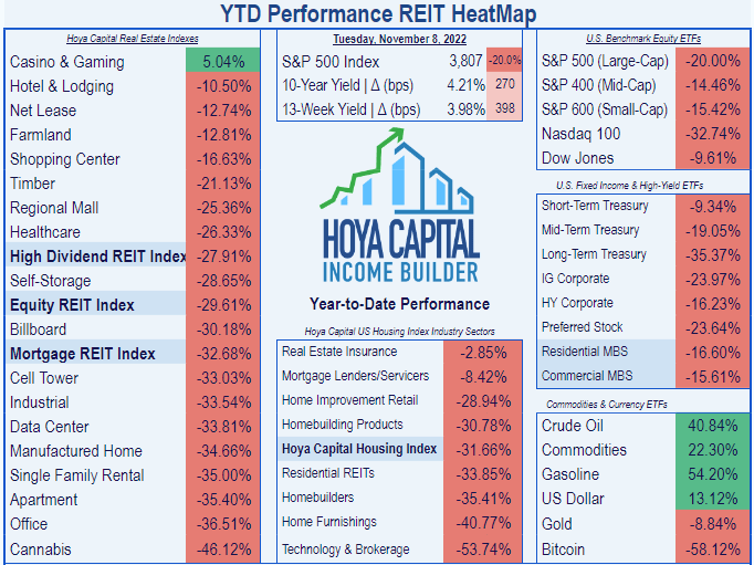 Back in February, I expected Apartment REITs to outperform the REIT average this year. It hasn’t worked out that way. Thanks to inflation and the resulting rotation to high yield, Apartment REITs have taken a beating on share price this year, returning a dismal (-35.40)%, compared to the Equity REIT Index return of (-29.61)%. It has been a bad year for REITs, as they have lagged both the Dow Jones Industrial Average and the Standard & Poor’s, as the chart below shows.