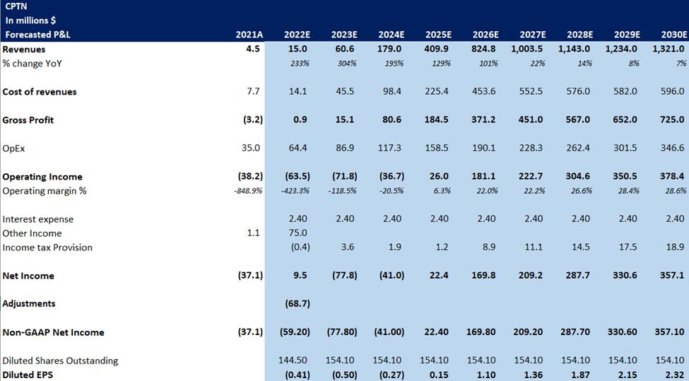 Led by the GM award win, which I expect to start to hit the run-rate of normalized revenue by 2026/2027 and account for about $300 million on an annual run-rate basis, I expect Cepton to be positioned to ramp revenues strongly, to about $1.3 billion by the end of the decade. This pace of revenue growth would be marking about 73% CAGR through to the end of the decade.
