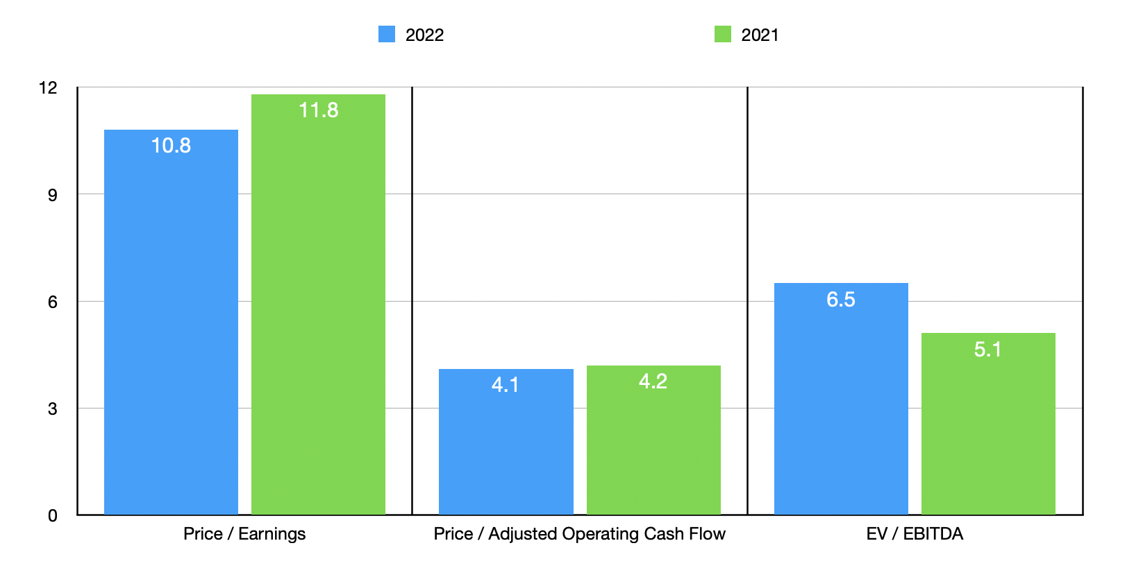 | Company | Price / Earnings | Price / Operating Cash Flow | EV / EBITDA |