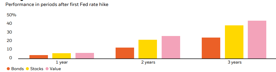Yet, we have begun to see a turning of the tide when it comes to growth-dominance. Stock market volatility and market corrections tend to bring investors down to earth when it comes to what they want to pay for equity exposure. Furthermore, the rate hike cycle has finally started in the U.S., and has already been underway in Canada as well. What does this mean for stocks? Historically speaking, this means Value stocks/funds should be in for strong returns comparatively: