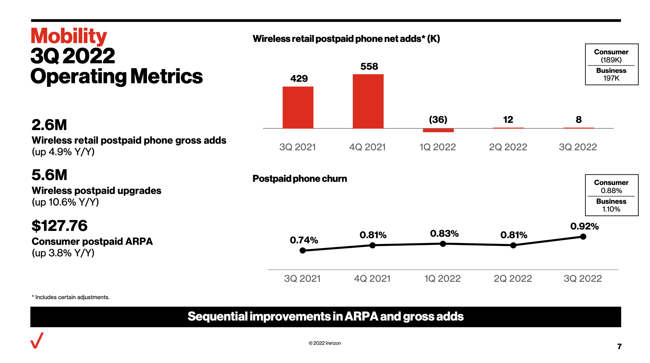 The stock price is down in 2022 because the firm has struggled with weak retail cellular subscriptions and upward trending churn rates relative to its competitors. T-Mobile (TMUS) is performing better because of its earlier emphasis on 5G, while AT&T (T) has refocused after divesting its content and DirecTV businesses. That said, Verizon is rolling out its 5G offerings and should be more competitive in 2023, if not quite at parity.