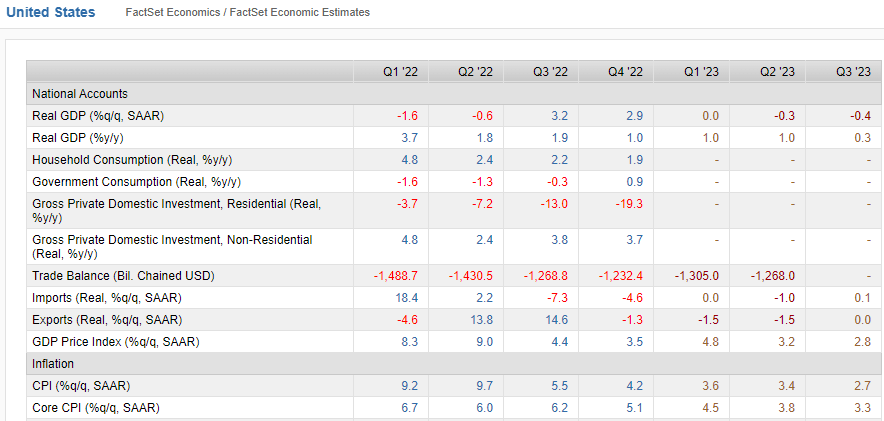 The economy was expected to fall into recession in the first half of 2023. That’s still the FactSet consensus.
