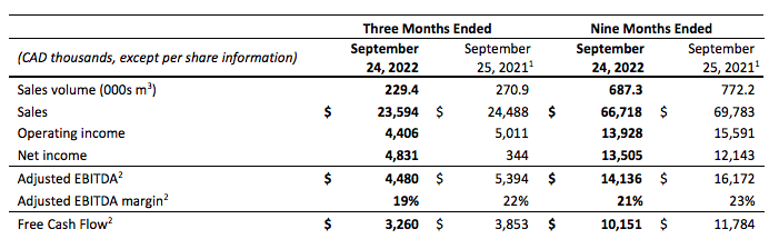 Cross-checking Acadian Timber consensus expectation, the company delivered a reported adj. Q3 2022 EBITDA of CAD$ 4.48 million and missed Wall Street numbers that were forecasting on average a CAD$ 5.16 million EBITDA. In detail, the miss was mainly due to lower volumes linked to limited contractor availability; however, price-positive realization and favorable currency development help the company to partially offset its earnings. Acadian adj. EBITDA margin was 19% versus the 22% performed in the same quarter last year. However, FCF on EBITDA was slightly up on a quarterly basis (72% versus 71%), but not sufficient to cover the quarterly dividend payment.