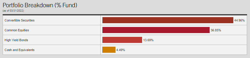 The credit quality of the portfolio is firmly in the high-yield or below-investment-grade space. However, the “not rated” category makes up the largest portion of their credit quality breakdown. The reasoning for this is that convertible securities are often issued under Rule 144A. This saves them the time and costs of issuing convertible securities.