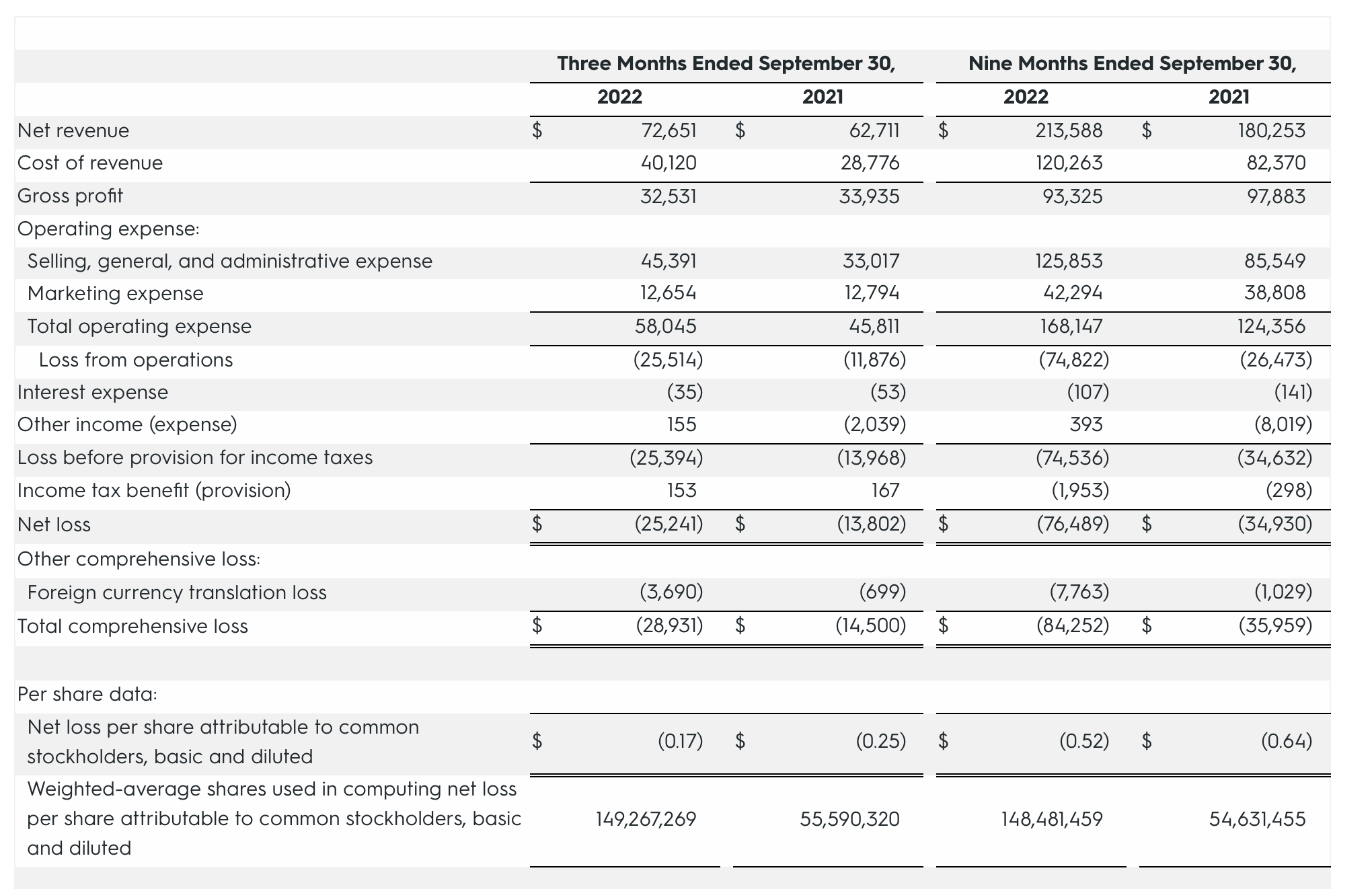 Let’s now go through Allbirds’ latest quarterly results in greater detail. The Q3 earnings summary is shown below:
