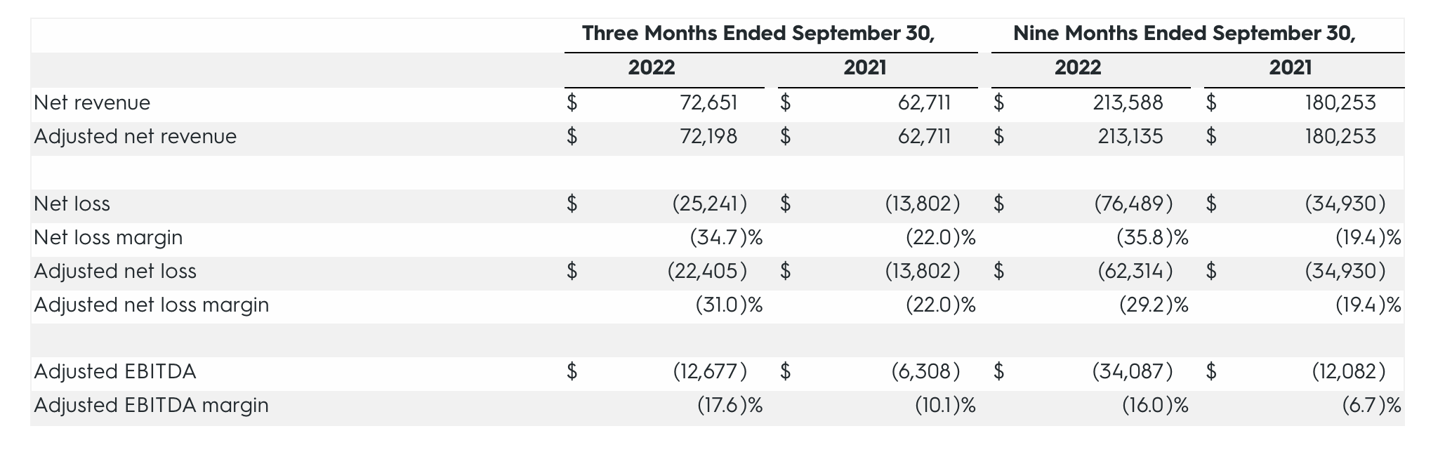 Driven primarily by its gross margin decay, Allbirds’ adjusted EBITDA loss doubled y/y to $12.7 million, representing a -17.6% adjusted EBITDA margin – a 750bps deterioration from -10.1% in the year-ago Q3.