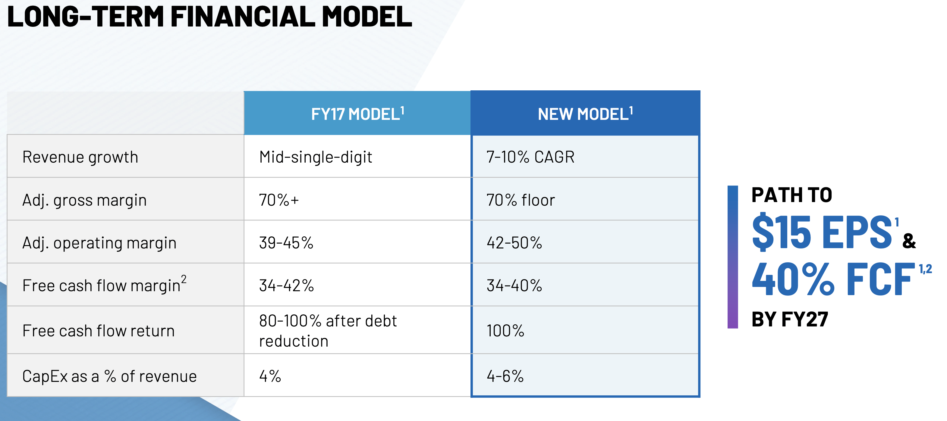 In fiscal 2022, the company achieved a remarkable adjusted operating margin of 49%, driven by elevated sales levels, full utilization of internal factories, and a favorable chip pricing environment. However, we expect this margin to decrease in the upcoming fiscal years due to difficult comps and a weakening macroeconomic environment. We note that the company’s long-term operating margin target of 42-50%, implying a mid-cycle target of 46%. In a global recession scenario, we would expect operating margins to be towards the low-end of this target range.