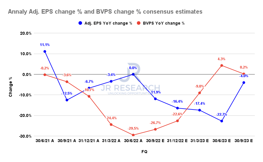 Therefore, we believe investors need to be cautious as NLY’s book value per share is not expected to recover markedly through FY23, even though its decline should normalize.