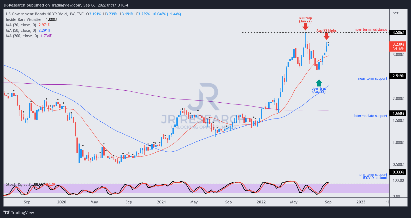 A glance over the price action in the US 10Y government bonds suggests that the buying momentum remains well below June’s high, despite the Fed’s hawkish commentary at Jackson Hole. Therefore, we surmise that the market could still be pricing a less hawkish Fed moving forward, alleviating the headwinds on Annaly’s BVPS growth.