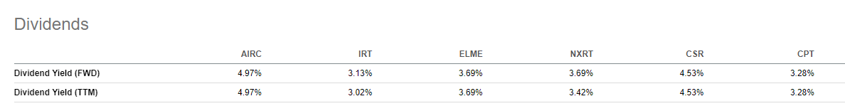 Seeking Alpha – Current Dividend Yield Of AIRC Compared To Peers