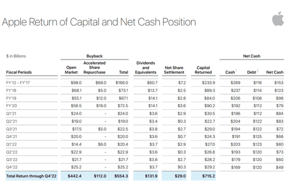Apple’s return of capital in 2022 wasn’t a fluke and has established a long track record of rewarding shareholders