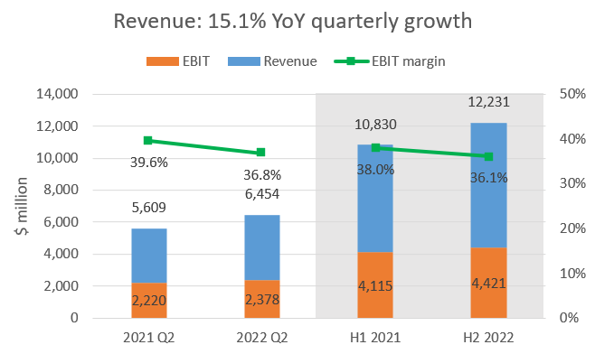 At last, we’re starting to see some upwards momentum in investment income i.e. dividends from equity investments and interest from fixed income investments. The increase was primarily attributable to the net deployment of about $45 billion into equity securities during H1/2022 which is now earning dividends for BRK (58.3% YoY growth). Interest and other investment income also increased 44.3% to $228 million. The short-term treasuries held on the balance sheet are finally starting to yield something for BRK’s shareholders which is very satisfying after nearly two years of zero interest rates.