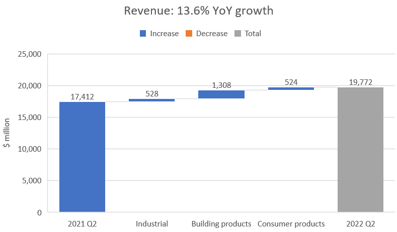 Manufacturing had a good quarter as a whole with some nuances when you look at the different segments. All segments grew well (13.6%) although growth decelerated in the Industrial and Consumer products segments (7.3% and 13.7% YoY respectively). Building products continued its strong trend with 20.4% YoY growth.
