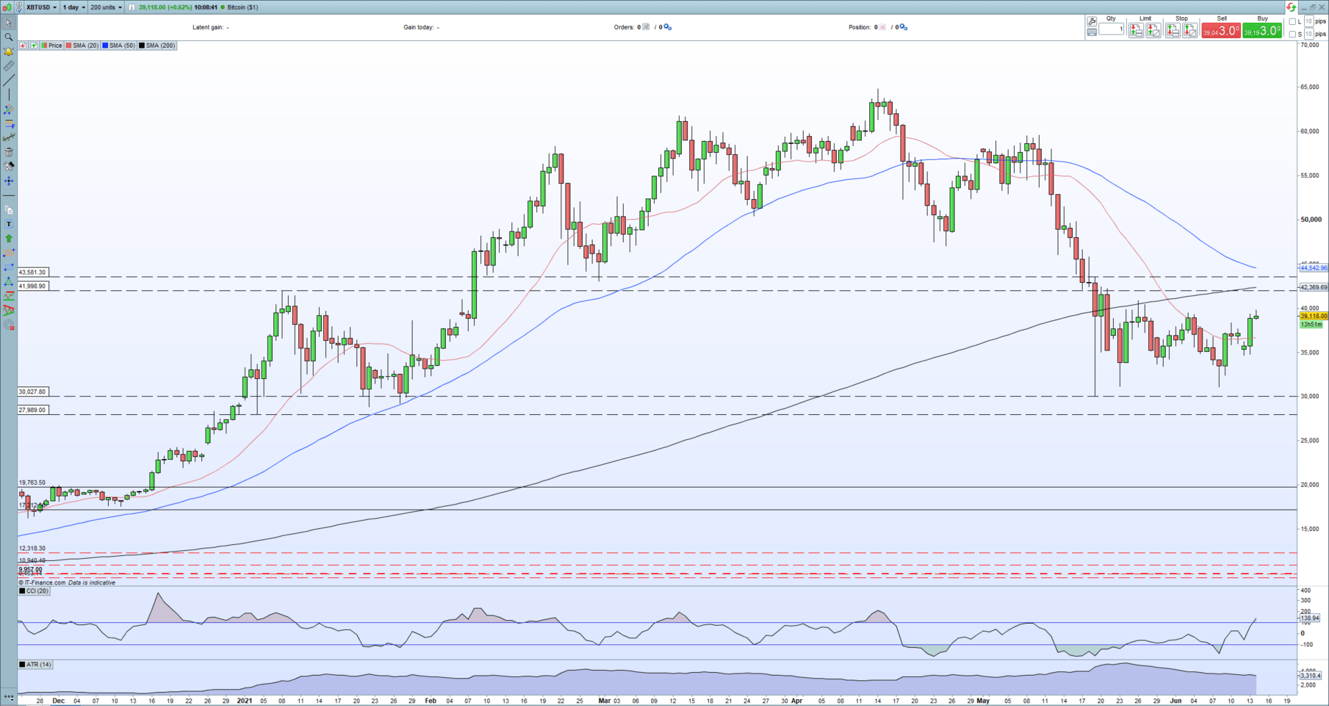 - Bitcoin rejects $40,000 but positive sentiment building.