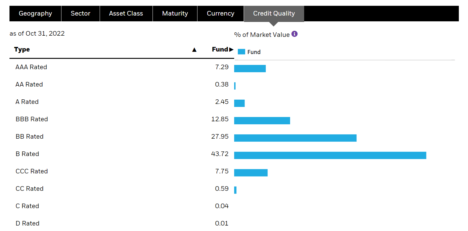 Figure 2 shows BLW’s credit quality distribution. BLW’s portfolio has 23% of assets invested in IG credits and the rest are non investment grade.