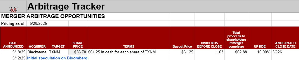 As of the time of writing on 5/28/25, there is an 11% remaining upside to the buyout price.