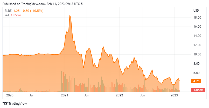 Since third quarter results came out, four analyst firms including Oppenheimer and Citigroup have reiterated Buy/Outperform ratings on BLDE. Two contained a downward price target revision, it should be noted. Price targets proffered range from $6 to $11 a share.