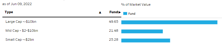 BMEZ is similar to BSTZ and BIGZ because they have a sleeve of private investments. They target up to 25% in private securities. However, they aren’t limited to any specific geography or market cap. This fund favors U.S. investments, with its ~76% allocation in U.S.-based names. With private investments generally being smaller companies, we see some exposure to small and mid-cap names.