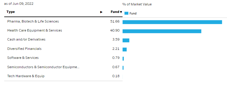Where they are restricted or focused, though, is the healthcare space. When looking at the industry exposure, we see an overwhelming allocation to the top two healthcare-related spaces.