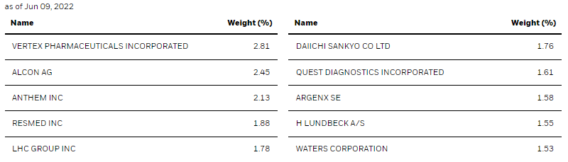 BMEZ “seeks to invest up to 25% in private companies.” It intends to do this through “at least 80% of its total assets in equity securities of companies principally engaged in the health sciences group of industries and equity derivatives with exposure to the health sciences group of industries.” With this, it also utilizes an options strategy.