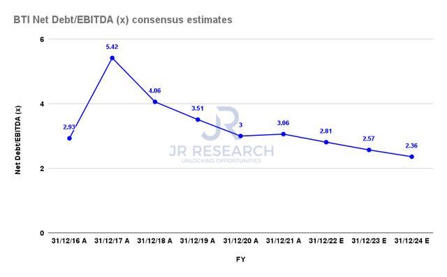 BAT Net debt/EBITDA consensus estimates (S&P Cap IQ)