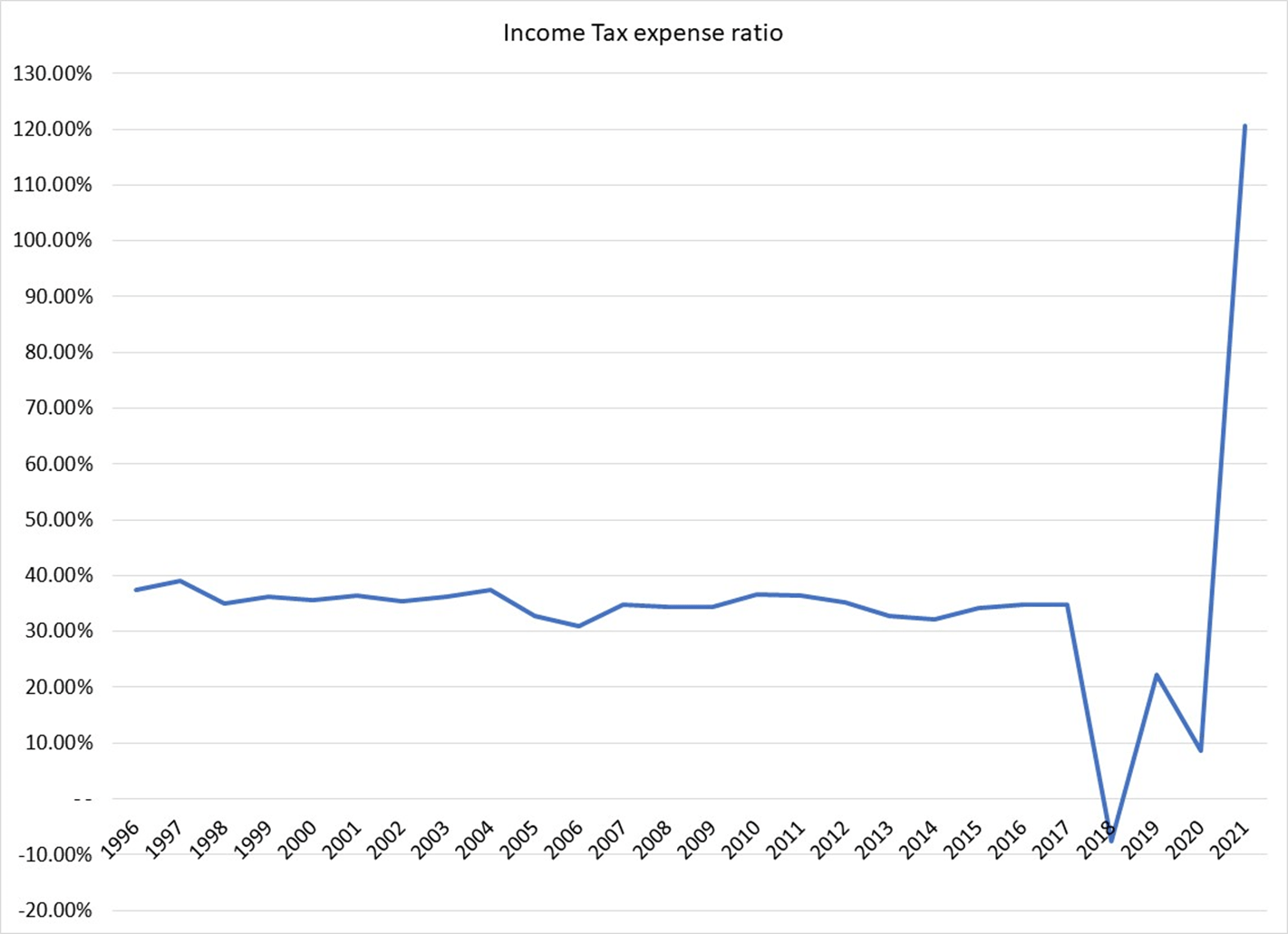 Figure 8 – CALM Income tax rate (roic.ai, macrotipstrading)