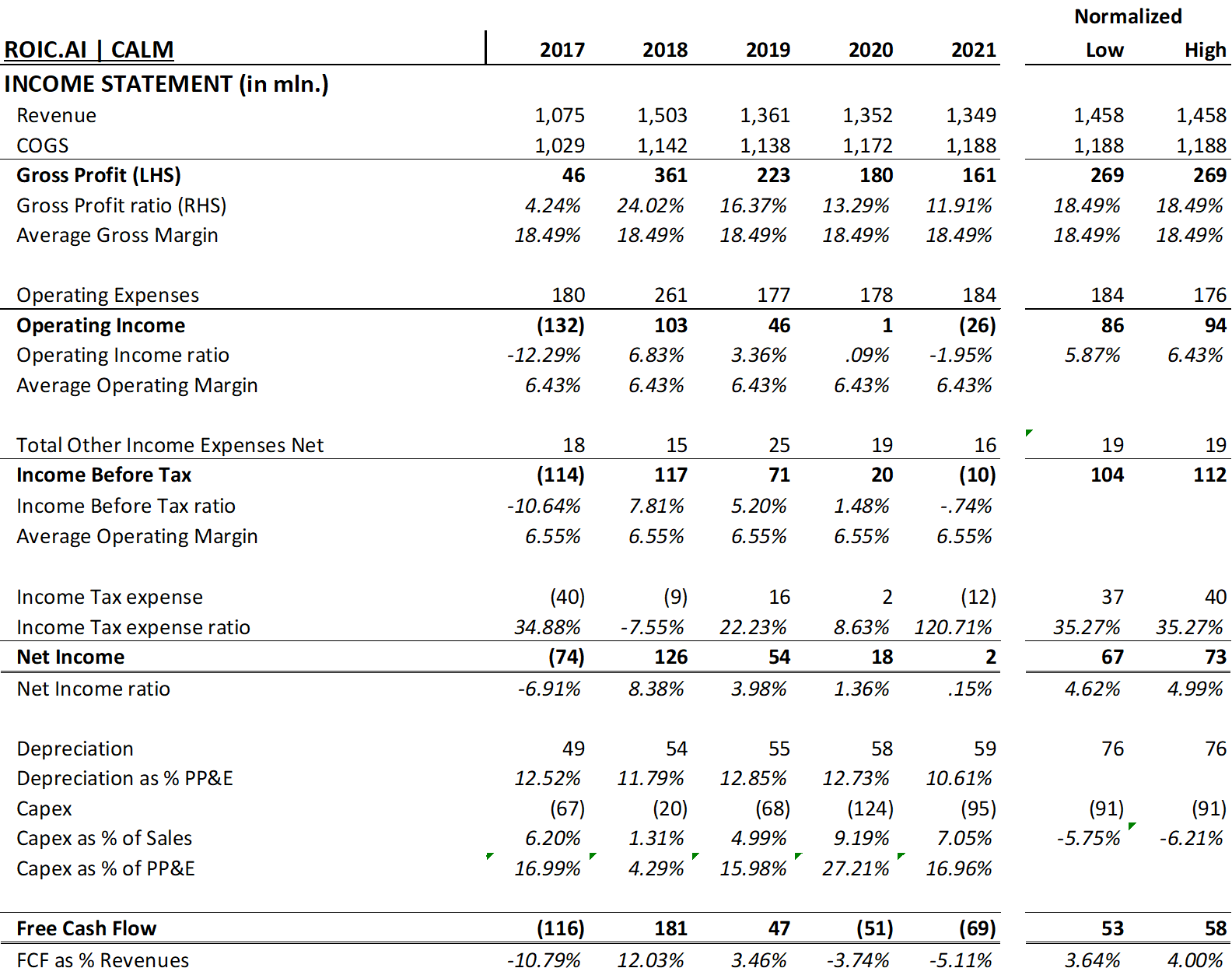 Figure 11 – CALM normalized financials (roic.ai, macrotipstrading)