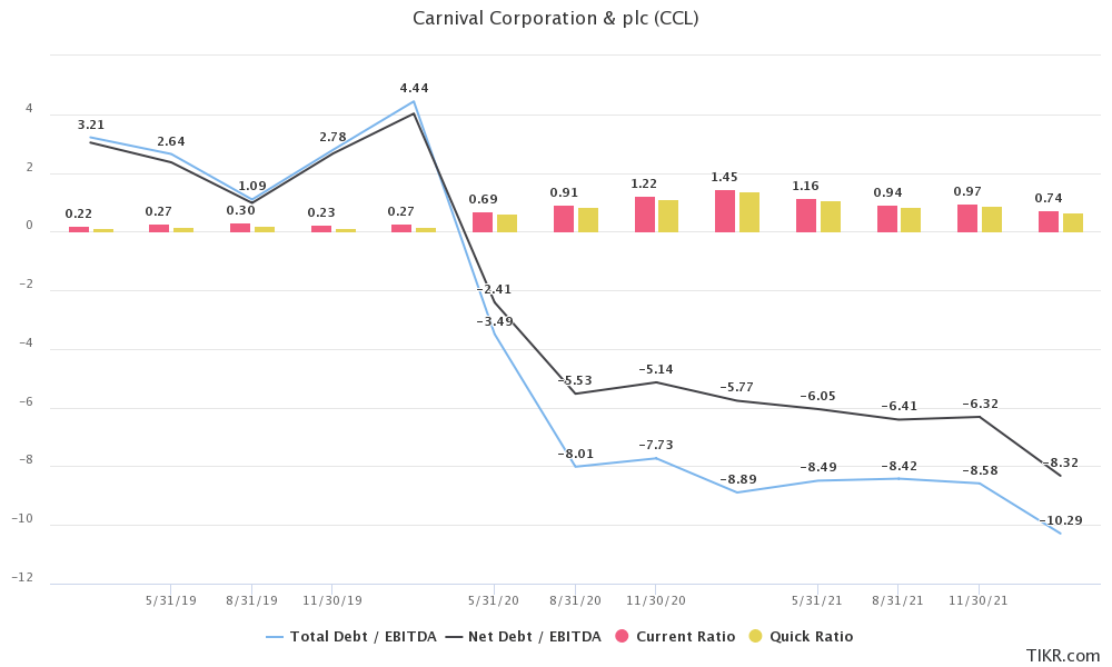 Carnival Corporation is a company that has found itself in between a rock and a hard place being forced to dock its entire cruise fleet during the pandemic as a result of the lockdowns, while at the same time still having to burn through almost $2 billion per quarter during most of the pandemic. With almost no cash-generating potential, the company has largely financed itself by either debt or equity financing, which ultimately caused almost irreparable damage to the company’s balance sheet, with some going as far as to question if the company is going to stay afloat.