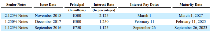 Table of issued senior notes (Annual report 2018)
