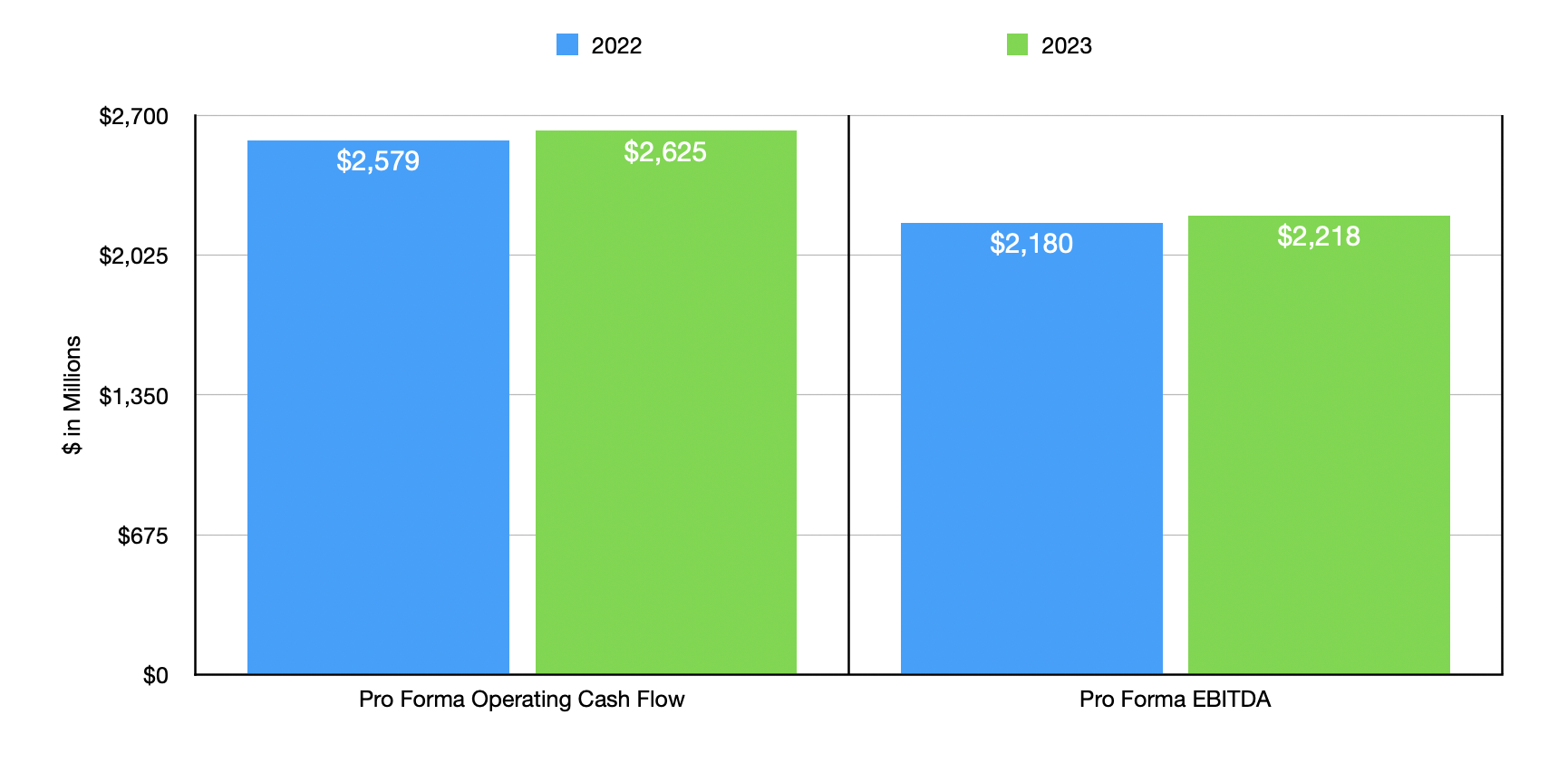 In terms of overall pricing for the company, the picture looks quite appealing. Using our 2022 figures, the firm is trading at a price to operating cash flow multiple of 1.42. This should drop to 1.39, if 2023 estimates are correct. Meanwhile, the EV to EBITDA multiple should drop from 2.70 this year to 2.65 next year. Overall, these are quite low levels for investors. That means that attractive upside potential might exist. It also means that the company has plenty of flexibility in a down market. For instance, if we take results from 2021, the combined firm would have generated operating cash flow of $1.26 billion. This was based on crude oil prices of $68.67 per barrel and natural gas prices of $3.54 per Mcf. However, if we factor hedges into the equation, then effective prices would have been $53.80 per barrel and $2.56 per Mcf, respectively. Even in this case, the price to operating cash flow multiple for the company would be just 2.91.