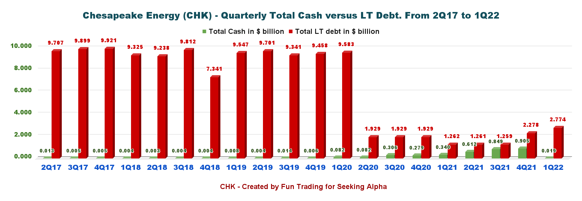 CHK Quarterly Cash versus Debt history (Fun Trading)