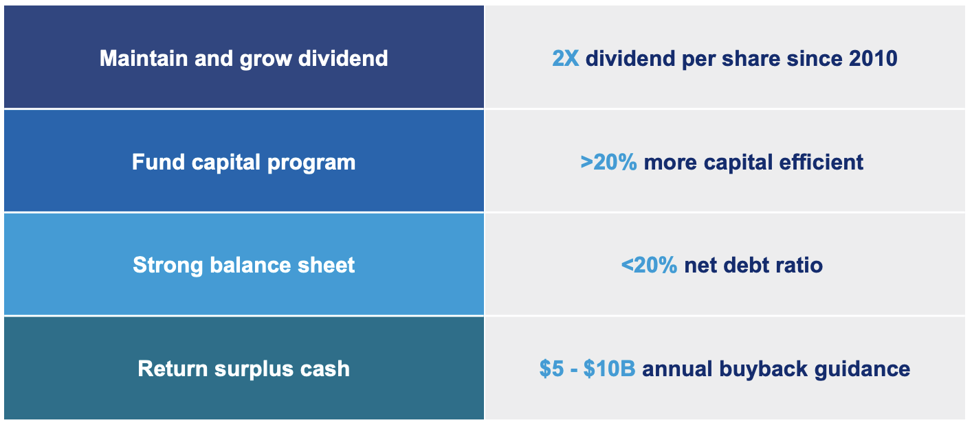 What makes Chevron unique is its focus on quality dividend growth, a strong balance sheet, and the willingness to distribute cash to shareholders.