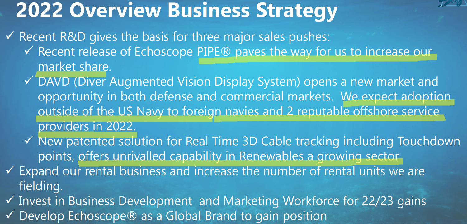 Roughly speaking, CODA has returned to the stage of vigorous scientific and technical activity after a long period to bring to the market as quickly as possible the Diver Augmented Vision Display System (DAVD), Echoscope PIPE, and a new patented solution for real-time 3D cable tracking. In the coming years, these investments should bear fruit – both in terms of expanding the addressable market and developing the existing market.