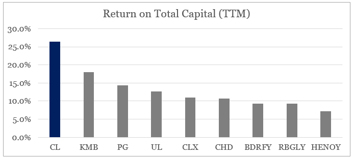 Having said that, CL could hardly experience a significant upward multiple repricing in the coming years, however, that does not necessarily mean that it is not a superior long-term investment given its high return on capital.