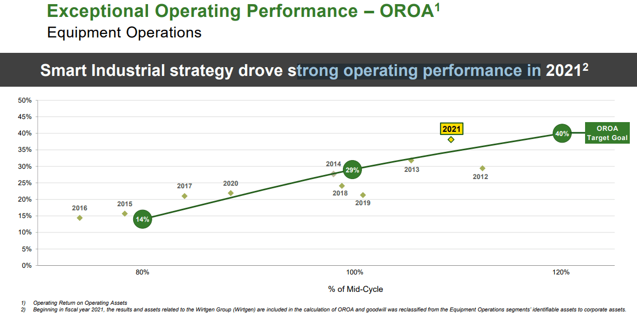 Needless to say that such an event will have an adverse impact on Deere’s return on operating assets, which is currently at peak levels.
