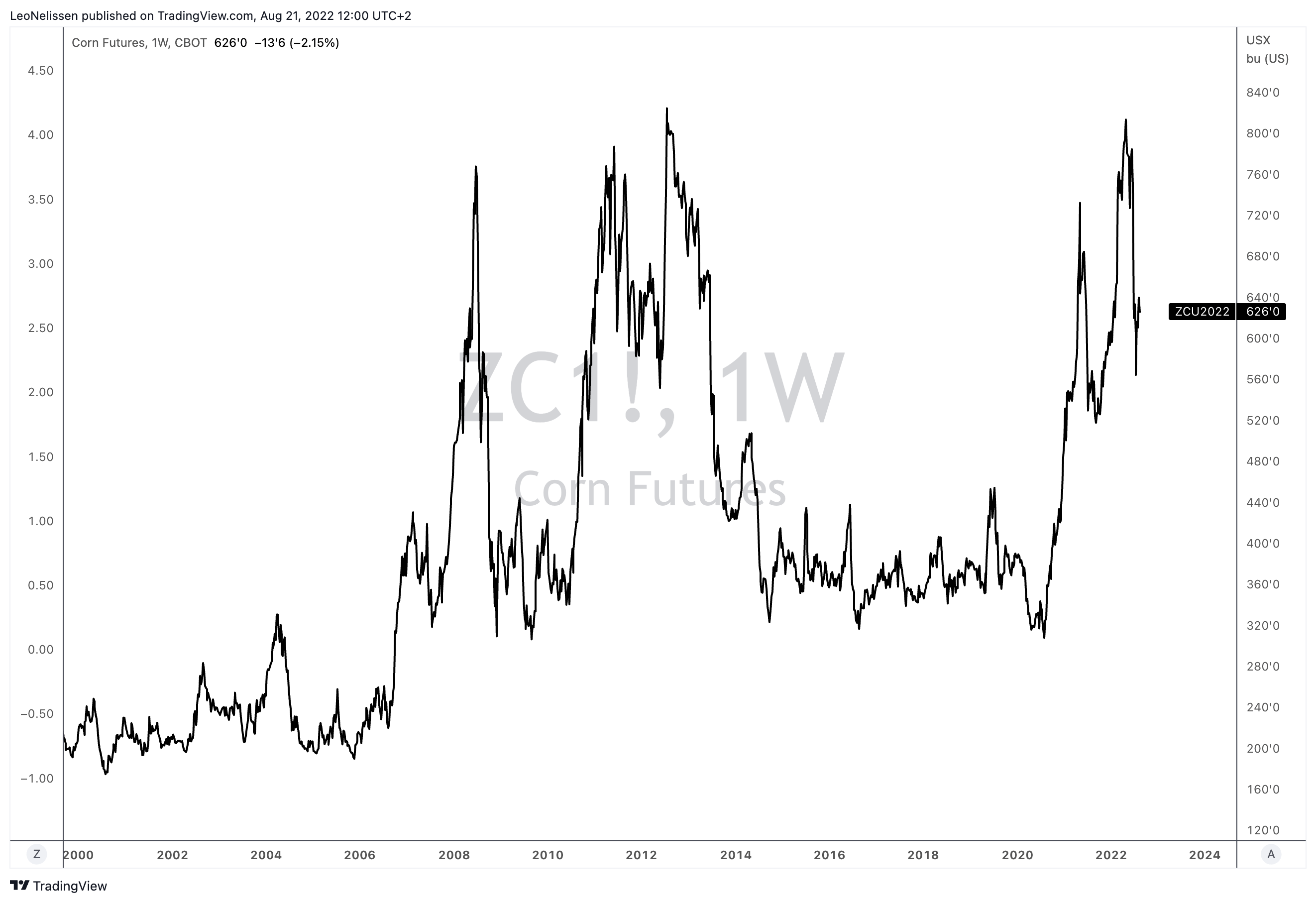 Using corn as a proxy – as I usually do – crop prices remain elevated, despite falling from recent highs caused by Ukraine war-related panic.