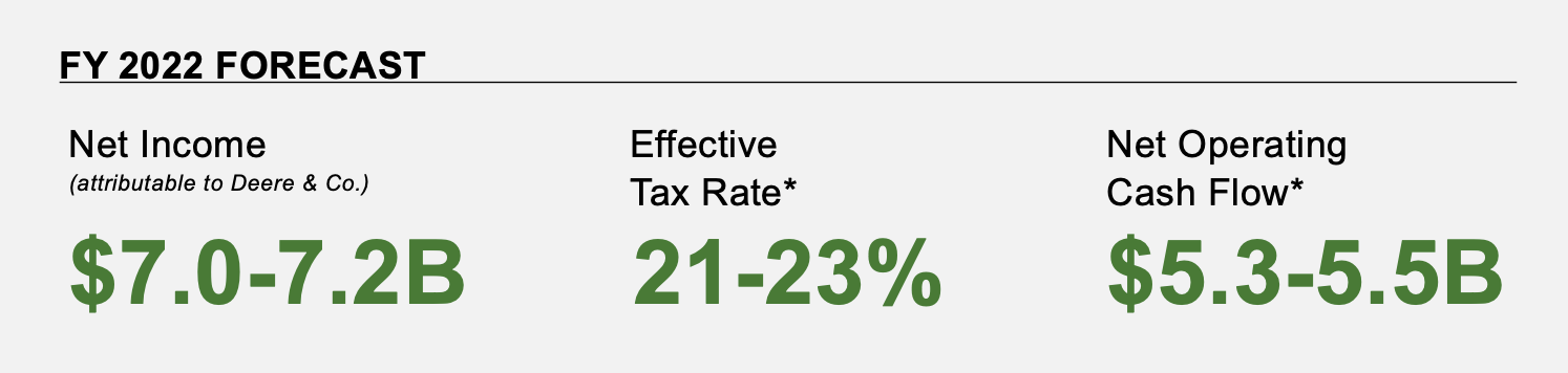 Deere mentioned strong agricultural fundamentals in its earnings call. For example: