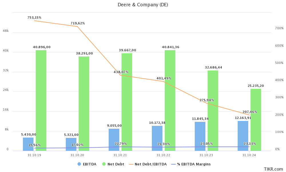 Deere is obviously witnessing these trends as it did mention that (farm/customer) profitability has come down from peak 2022 levels. However, customers are still very profitable, which is supportive of high replacement demand. According to Deere: