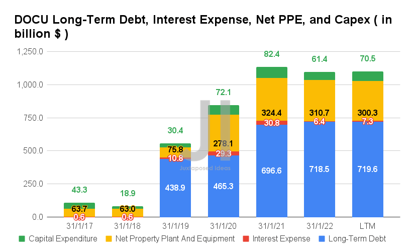 Therefore, it made sense that DOCU took on more financial obligations, given its lack of net income profitability. By the LTM, the company reported long-term debts of $719.6M, representing a notable increase of 63.9% since its IPO in 2018. Given that $690M will be due by January 2024, we speculatively expect further share dilution of up to 10.9M outstanding shares if converted based on recent stock prices. Otherwise, 1.64M shares based on the original agreement and share price of $262.65 then. Nonetheless, we applaud the management’s capable capital deployment, given that it minimizes DOCU’s exposure to any interest servicing with 0% rates for its latest capital raise. We shall see in 2024.