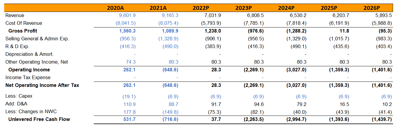 DOYU’s Unlevered Free Cash Flow Calculations (Author’s Spreadsheet)