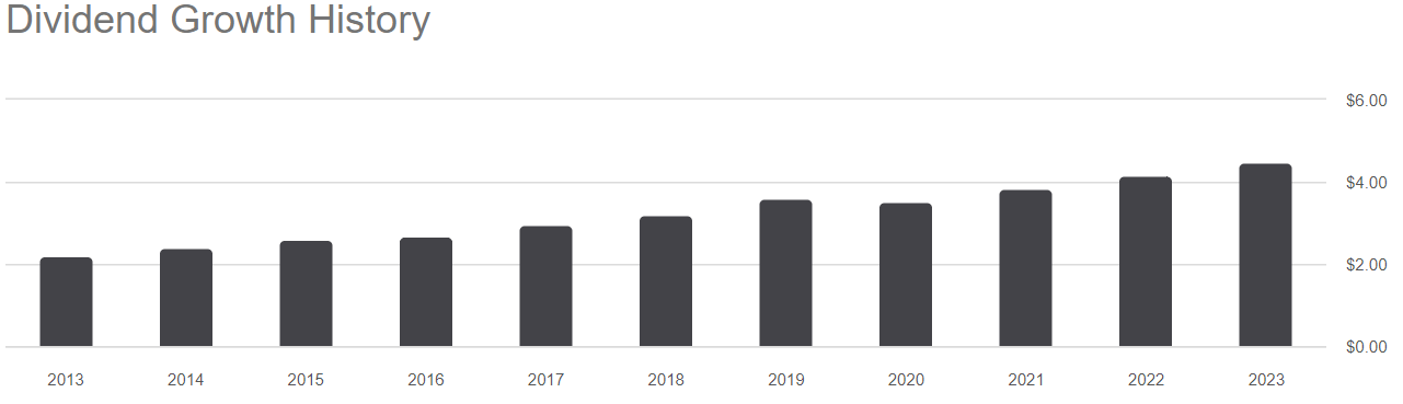 There is another dividend ETF I have already owned in my dividend portfolio for some time, which is the Schwab U.S. Dividend Equity ETF (SCHD). SCHD demonstrates an excellent dividend growth history as shown below. In my view, this is one of the reasons why SCHD is highly regarded as one of the top dividend ETFs.