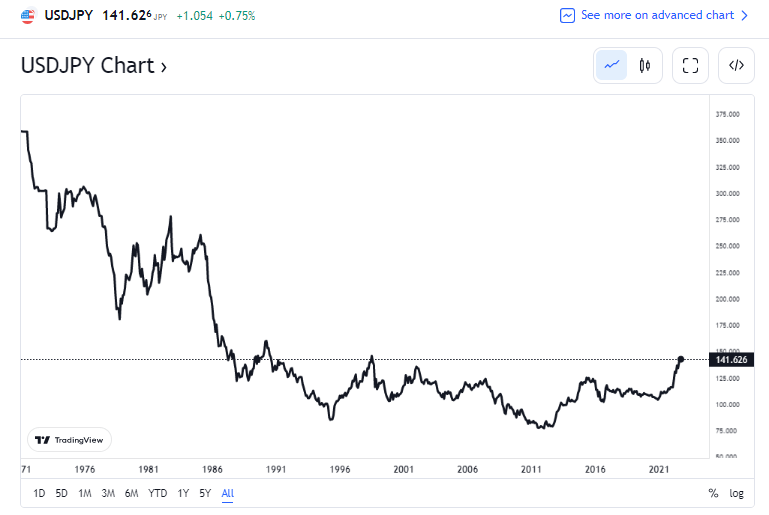 The USDJPY cross was near 100 as the calendar flipped from 2020 to 2021, and few market participants had their eyes on its price action. The yen is often seen as a safe haven currency, so when turmoil and risk-off sentiment permeates global markets, the yen is often bid up. That’s not the case this year as the global bear market presses on. Instead, USDJPY at 142 is just percentage points away from notching fresh 32-year highs.