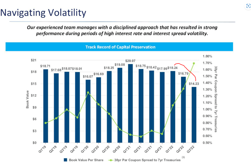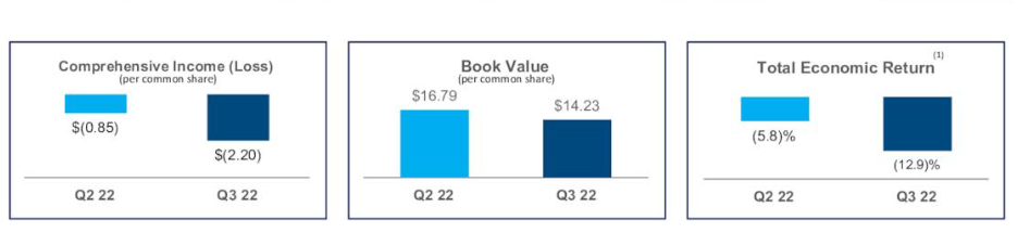 Before we get to those questions, here is a brief look at what happened in Q3-2022. As shown above (and below), book value dropped sharply. Total economic return was solidly in the red.