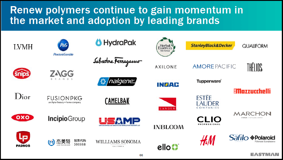 Most global brands are fully committed to GHG emissions reduction as it is now a requirement for corporate survival. Eastman Chemical stands out as a primary beneficiary of this secular growth trend. The growth potential from the recycling or the circular growth vector alone is extraordinary.
