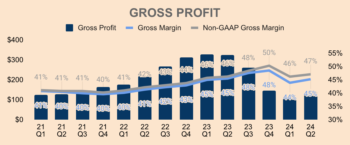 Gross Profit for the quarter was $137M, representing a GAAP Gross Margin of 45%, which was flat YoY but up 1pp QoQ.