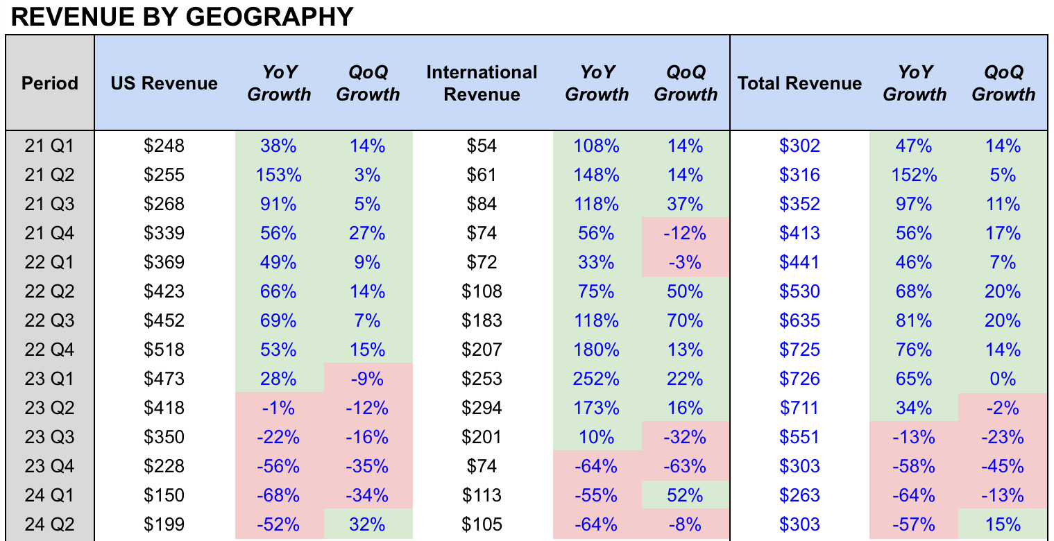 Breaking it down by geography, the US market drove most of the growth, up 32% QoQ to $199M. Overall, sell-through in the US was up 8% QoQ. Of important note, sell-through in California was up 7% QoQ, “indicating that our California business has stabilized” following recent policy changes, namely NEM 3.0.