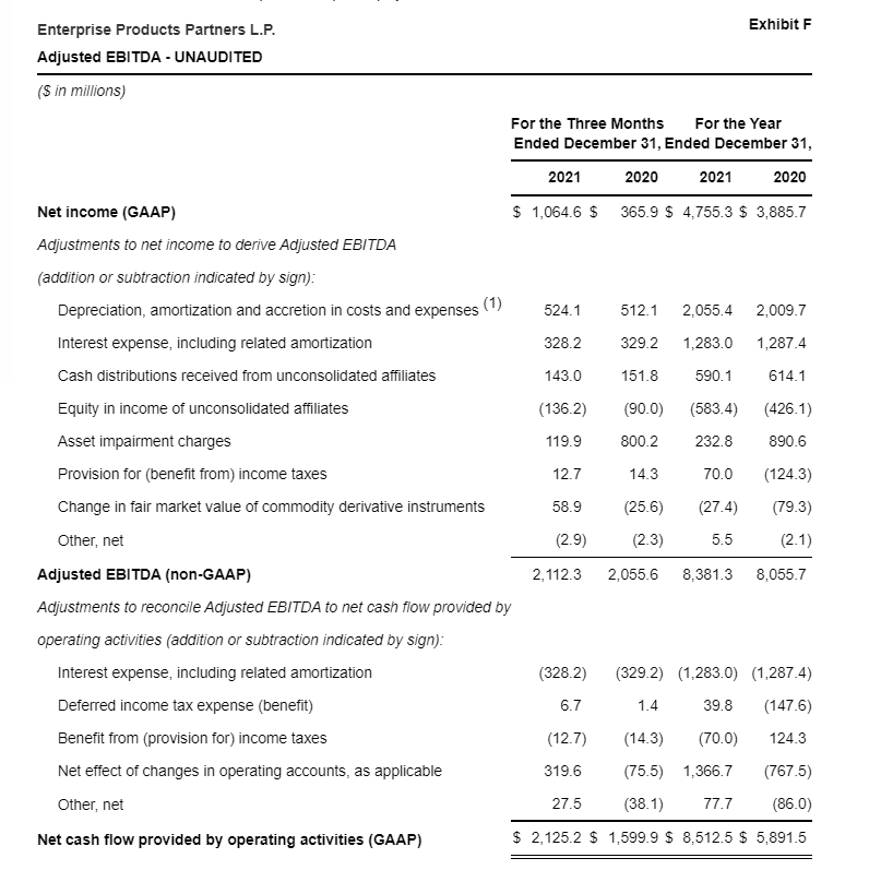 Enterprise Products Partners Calculation Of Adjusted EBITDA And Cash Flow (Enterprise Products Partners Fourth Quarter 2021, Earnings Press Release)