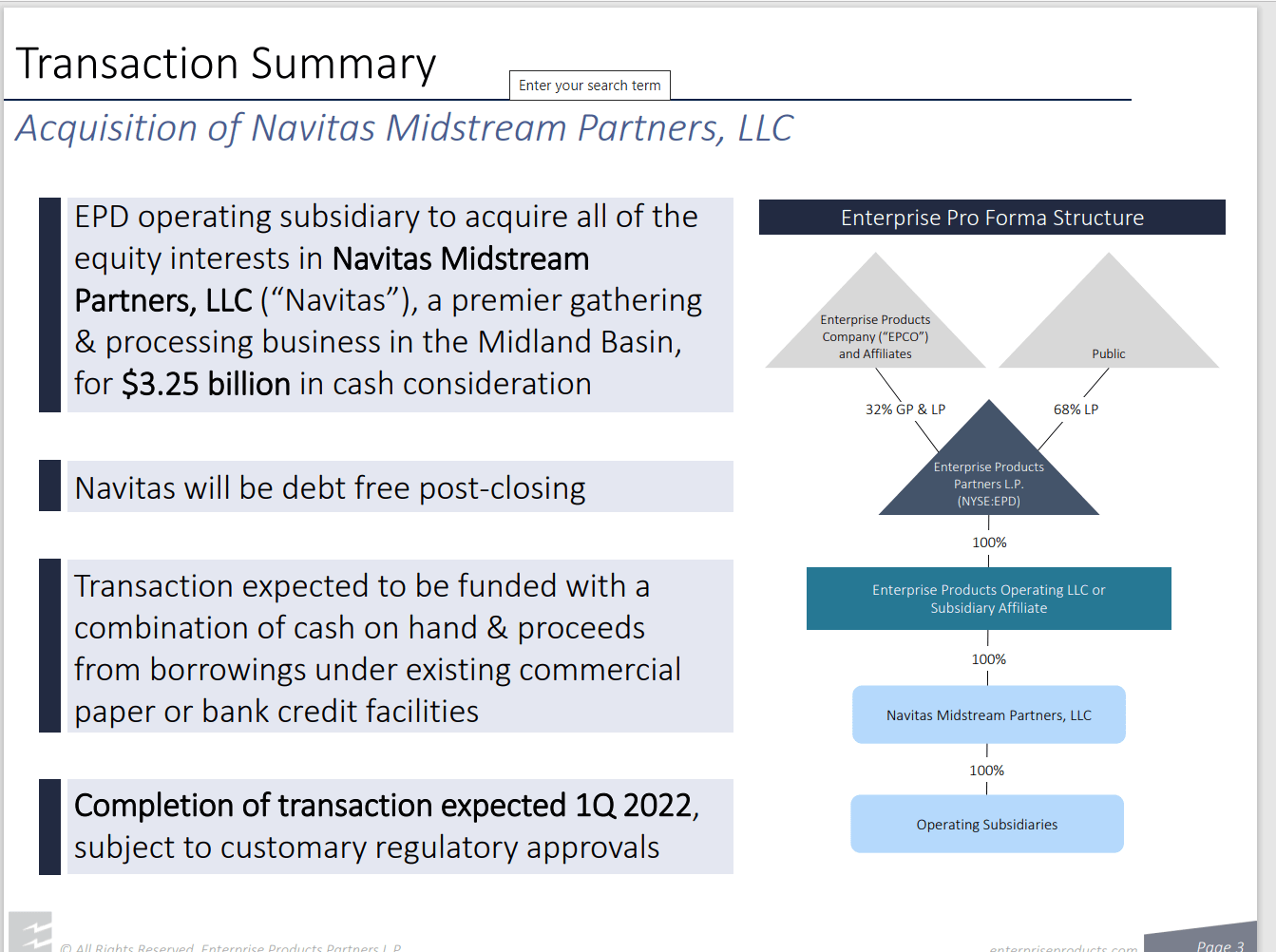 Enterprise Products Partners Acquisition Of Navitas Midstream Partners LLC (Enterprise Products Partners Corporate Presentation Of Navitas Acquisition)