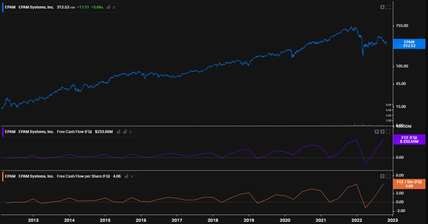 Founded in 1993 and entering the public markets via IPO in 2012, EPAM has performed quite well since then, appreciating to 17x its IPO price: