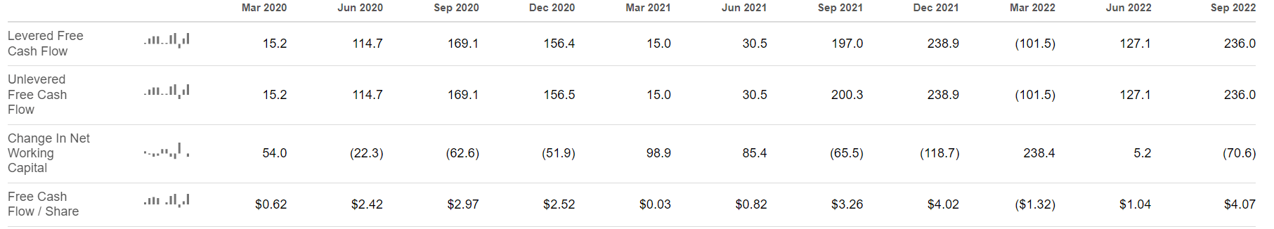 Looking at this cash flow generation across the lifecycle of the firm, we see a consistent engine for free cash flow. While recent quarters have been somewhat more volatile, this volatility also extends in the upward direction – with record levels of free cash flow as well as cash flow per share in the last several quarters.
